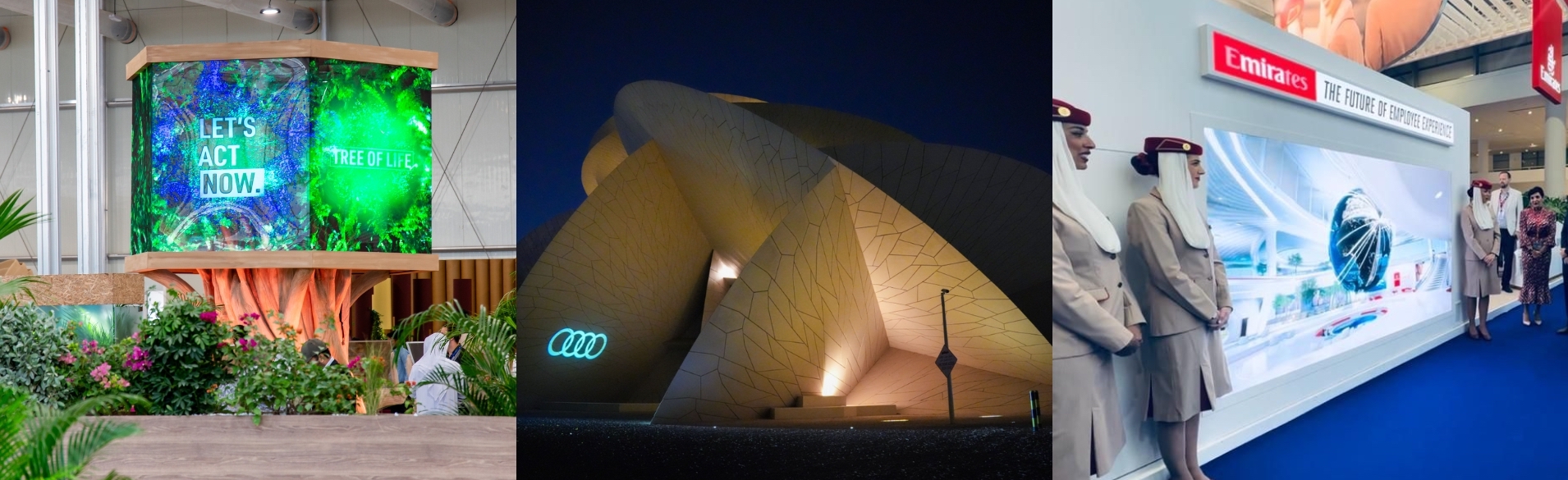 - The Tree of Life: A world-first, interactive, Artificial Intelligence powered digital art installation and contemporary symbol of environmental sustainability, educating attendees about the key themes and topics of COP28. The AI-generative art experience allowed for individuals to pledge commitment to global environmental sustainability.
